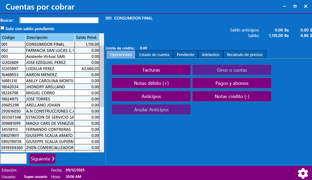Sistema para administrar los cobros y pagos