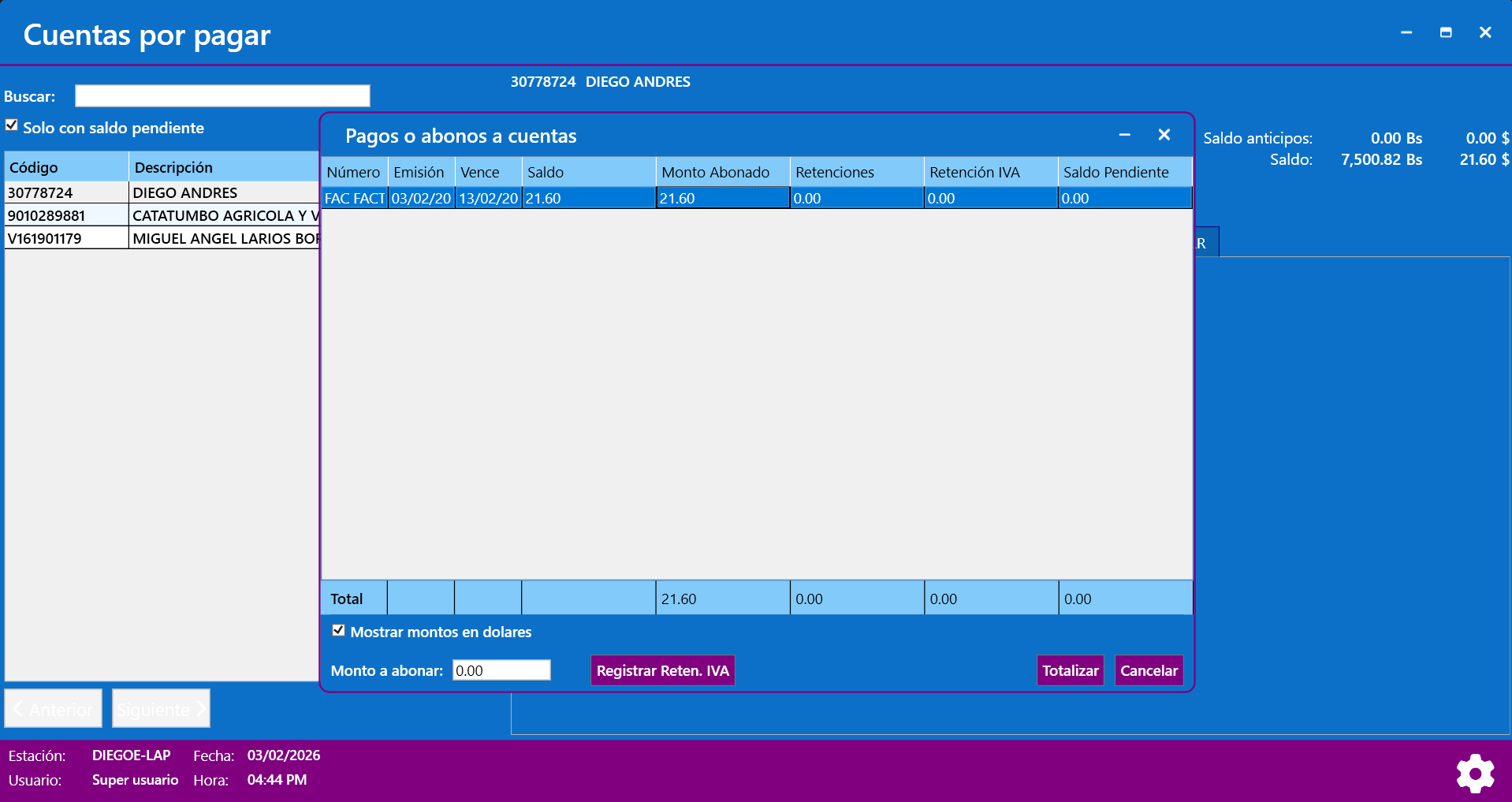 Cuentas por pagar